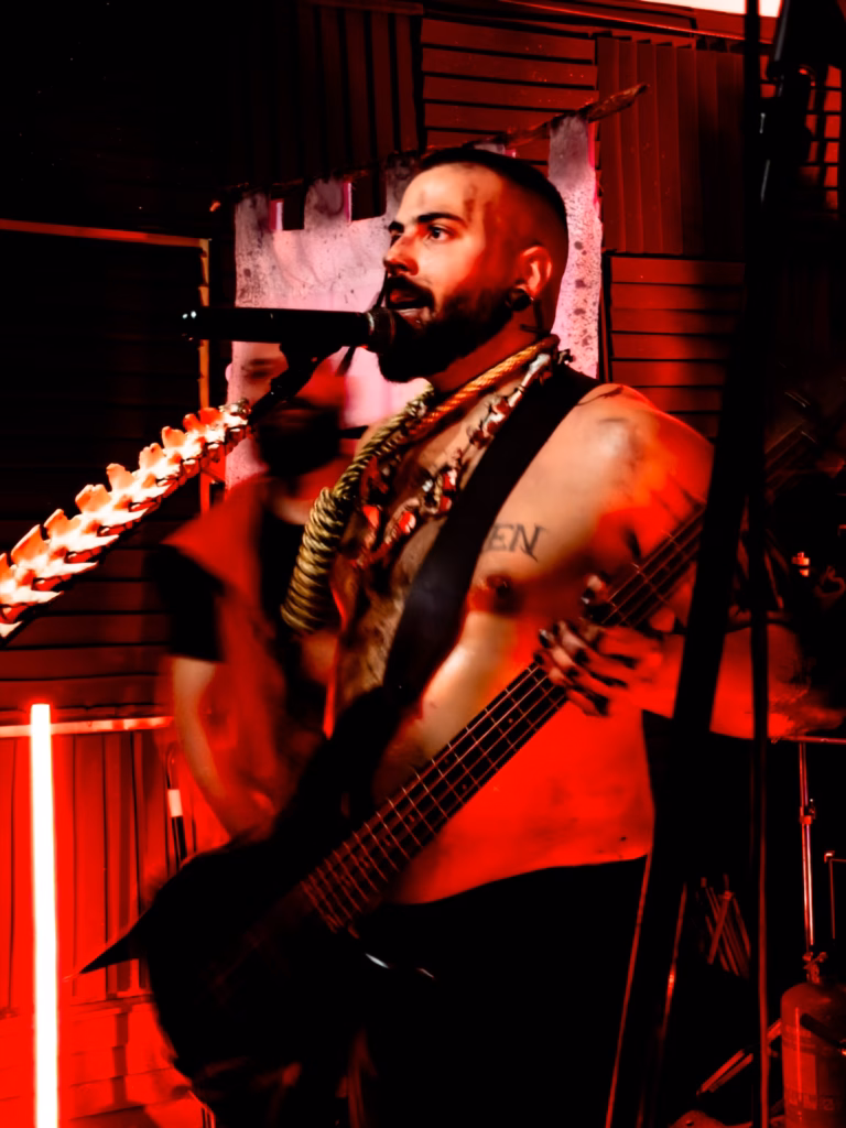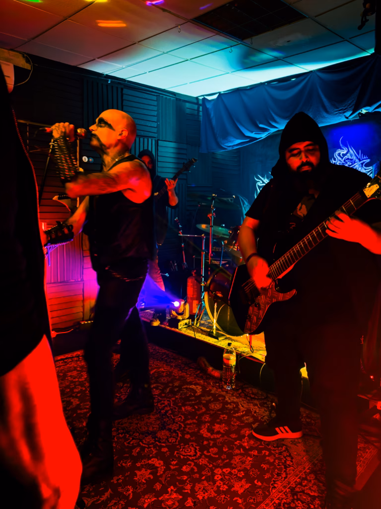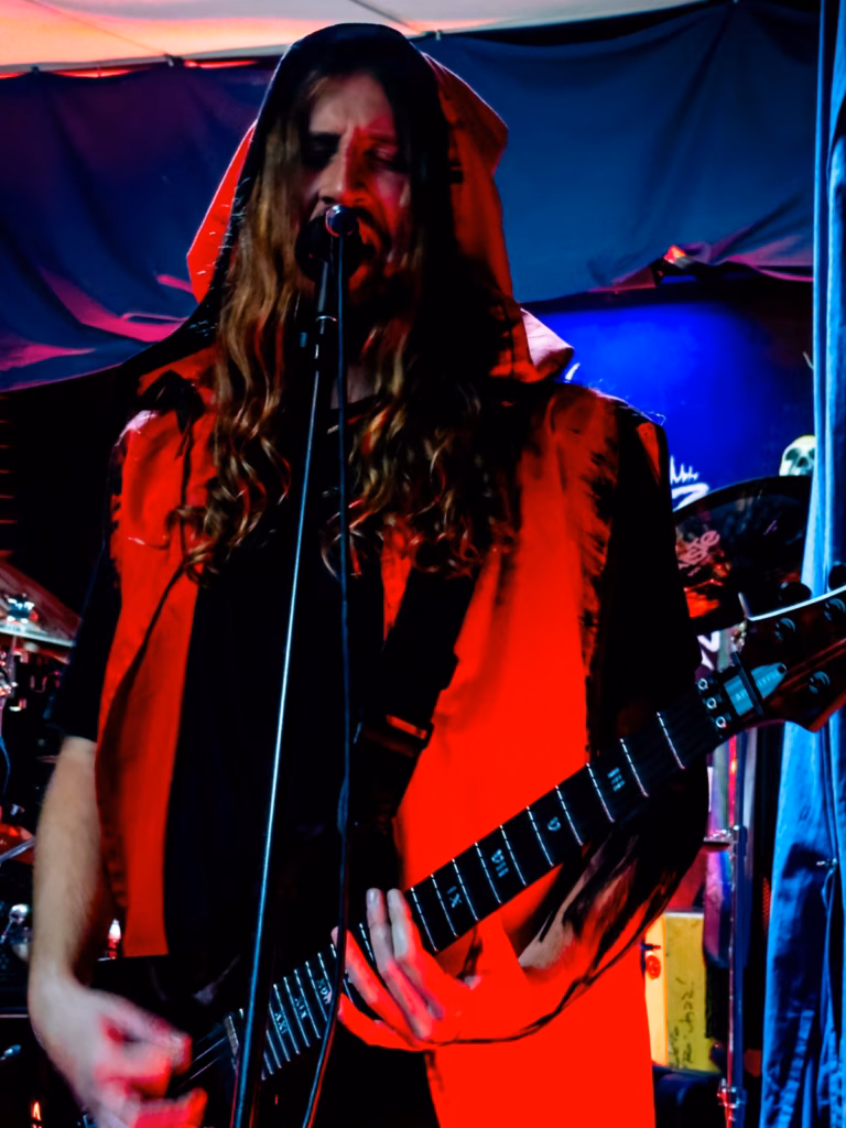 Começa então a noite Negra de Azzaya com o seu visual profano, representando no seu tema “Raging Satanic Aggression” do seu EP “Raging Satanic Aggression” lançado em dezembro de 2024, a agressividade do Black Metal Underground, um tema do qual aborda a Blasfémia, o Satanismo e o ocultismo de uma forma crua com riffs rápidos e agressivos, bateria intensa com blast beats, e os vocais rasgados. o segundo tema I Begin tema que deu o nome ao seu último álbum lançado em 2024, marcado pela sua guitarra rápida, a presença em palco de Azzaya tem uma identidade muito própria que por si só atrai e chama a atenção do público.