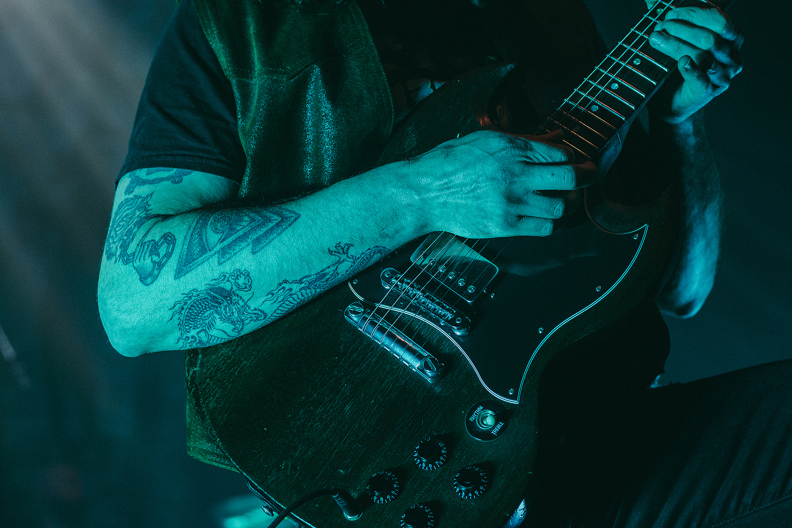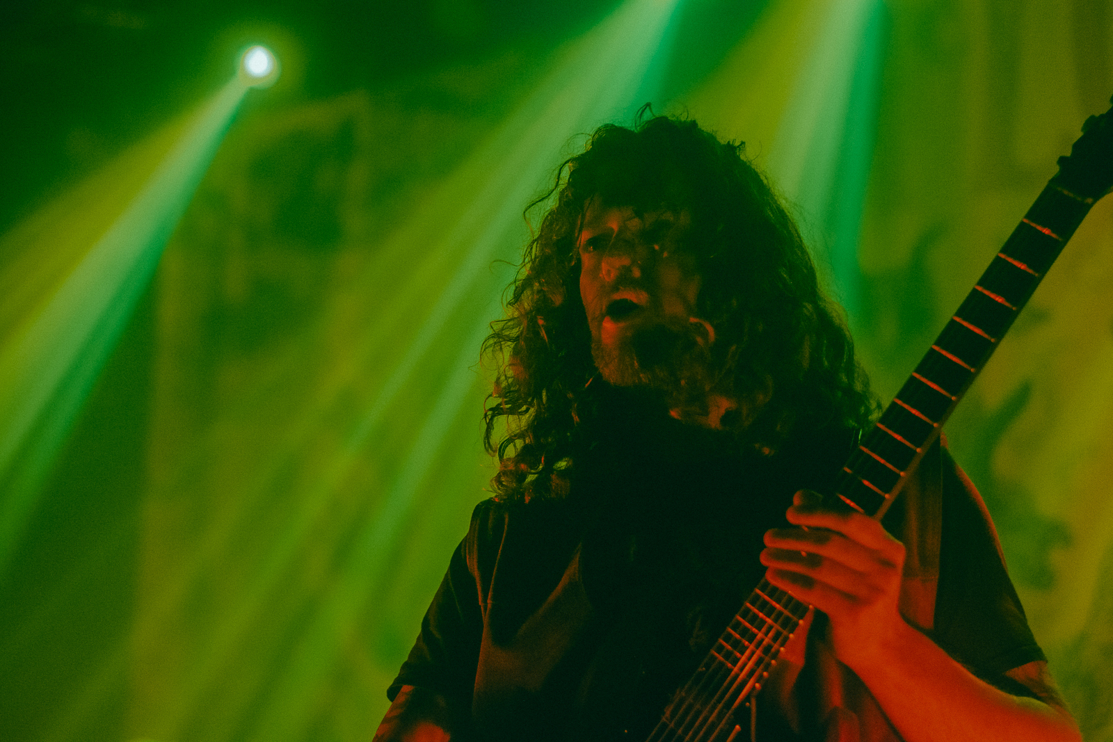 Seguiu se petardos alucinantes como “Mountain Throne”, “Reaper’s Scythe” e “Lady Lucifer” que incendiaram o publico presente já começando um bate cabeça pela primeira vez na noite , pesado, brutal e com riffs matadores ficou fácil ser engolido pela sonoridade do Green Lung. Quando “Song Of The Stones” começou o ambiente deu uma acalmada e serviu para um descanso momentaneo que se tornou uma admiração hipnótica tamanho o controle que o quinteto consegue apresentar, poucas vezes vi uma banda tão preparada e segura de si com tão pouco tempo de vida. Após este momento mais profundo quem conseguiu descansar descansou e quem não conseguiu logo tirou energias para a agressiva “Woodland Rites” seguida de verdadeiras pérolas como”Maxine (Witch Queen)” e “Graveyard Sun” e nessa altura o quinteto já tinha o publico português presente nas mãos.
